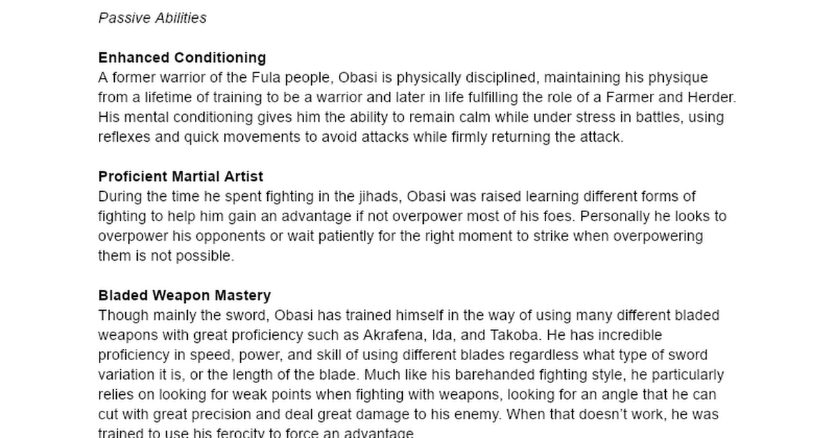 Skills/Physical Abilities: His weapon of choice is swords, but he can use a bow if he needs too. His skills are hand to hand combat, stealth ,and leadership. All skills he has learned over the years of strictly training to better prepare himself for war.