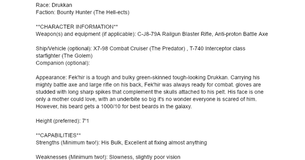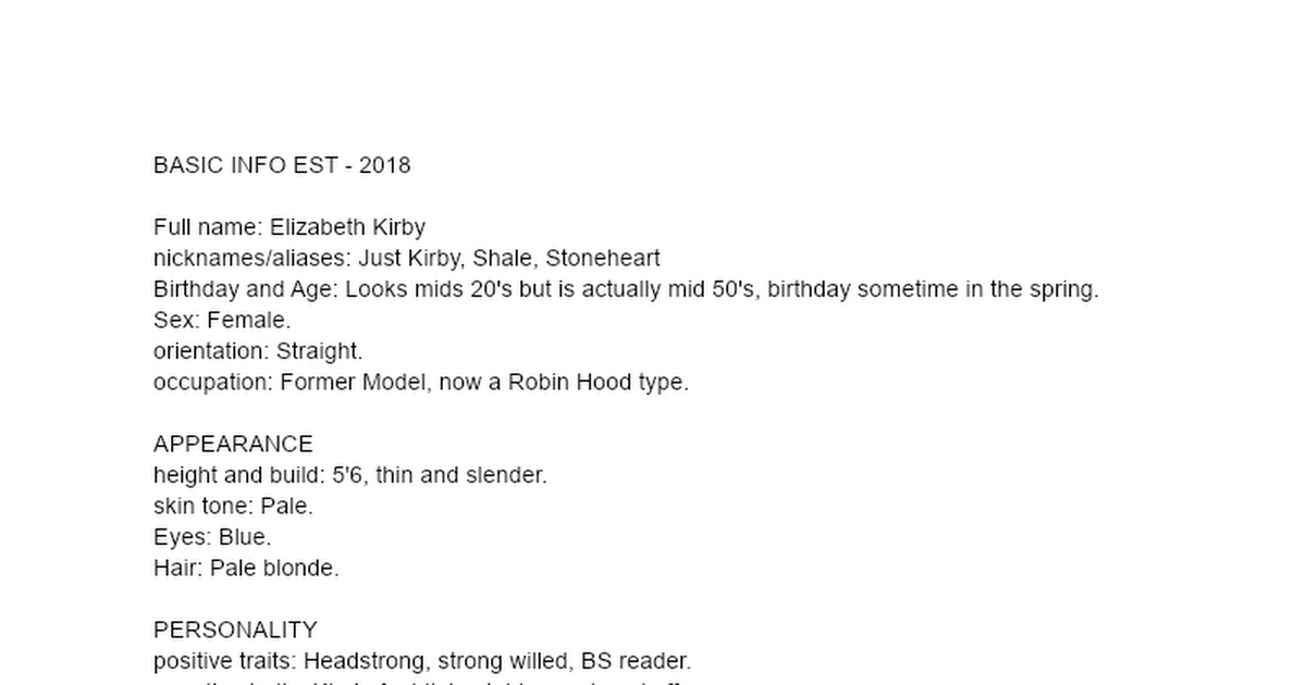 - Weaknesses: Gullible, ?Gentle?, Reckless