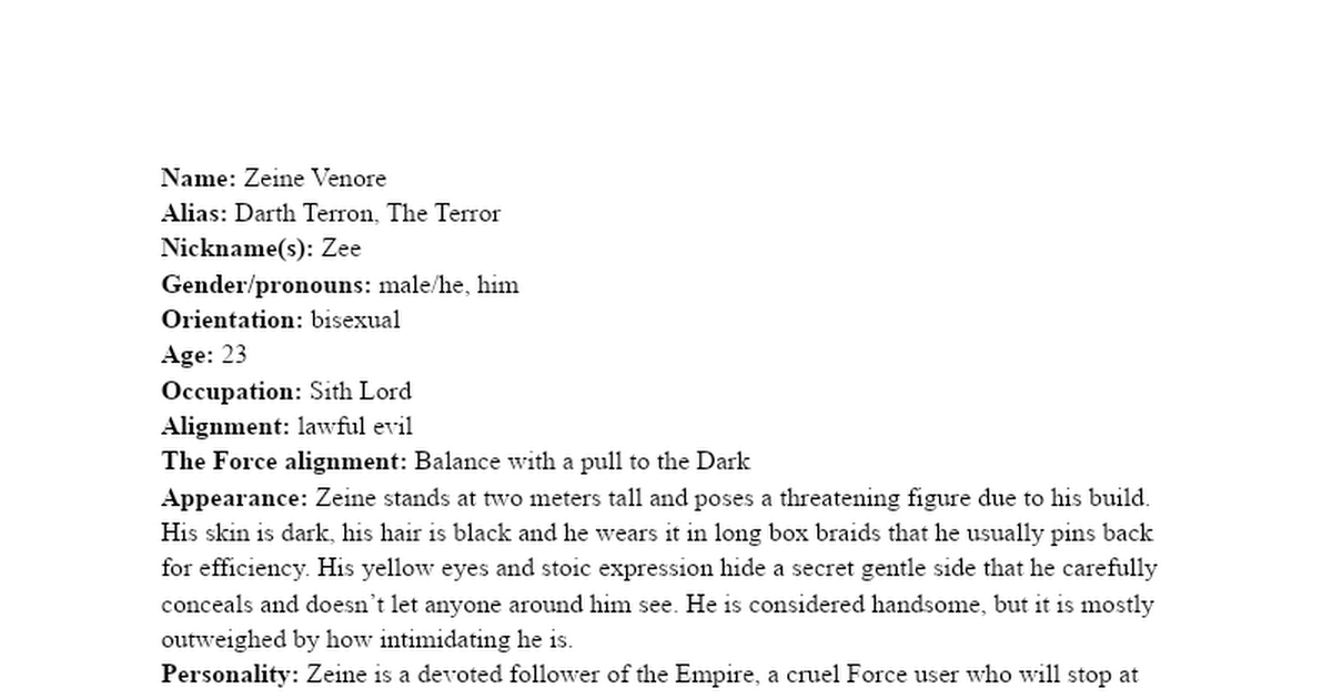 Personality: Desoto is arrogant, shallow and above all: an attention seeker. He thrives in crowded places and is often described as the life of the party. He has the ability to get along with anyone, but those who are of lower social class than himself he only converses with when he wants something from them.